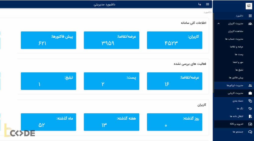 طراحی داشبورد مدیریتی اختصاصی برای وبسایت با رابط کاربری حرفهای و امکانات تحلیلی پیشرفته بهمنظور مدیریت متمرکز محتوا، کاربران و گزارشهای آماری بهصورت یکپارچه و کاربرپسند.